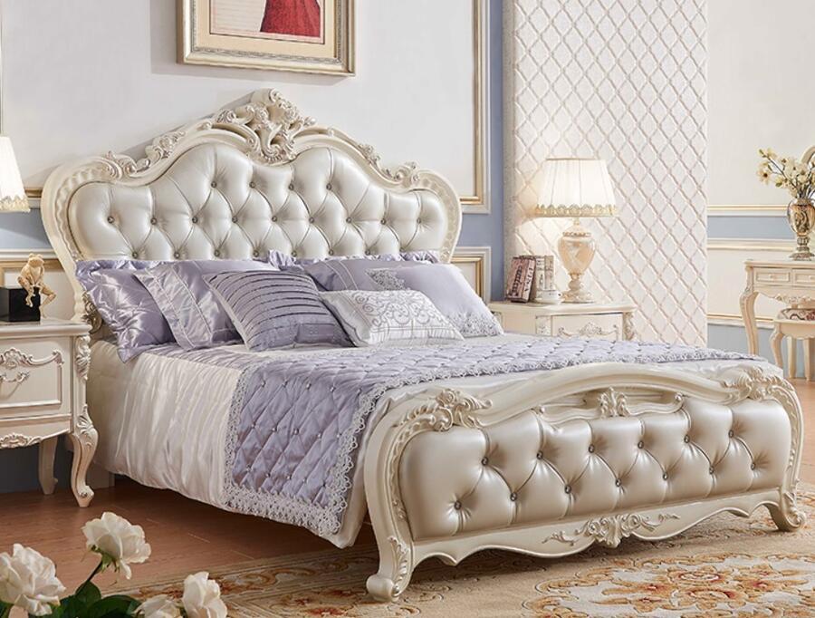 このベッドは、美しい曲線や華やかな装飾が施されたヘッドボードとフットボードが特徴です。繊細な彫刻が施された木製フレームは、上品で優雅な雰囲気を醸し出しています。